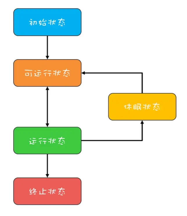- 初始状态: 线程已经被创建,但是还没有分配CPU执行。 这个状态属于编程语言特有的,不过这里所谓的被创建,仅仅时在编程语言层面被创建,而在操作系统层面,真正的线程还没创建。