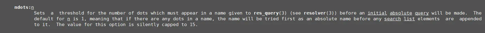 ndots的含义可以通过man resolv.conf命令查看,如下: