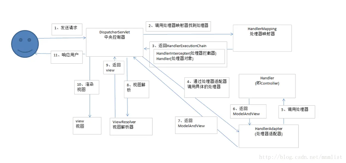 图解SpringMVC执行流程: