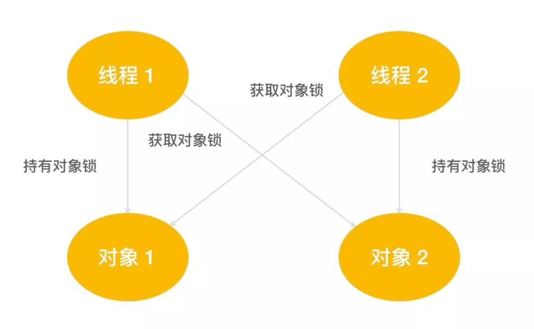 你有两个线程 A 和 B ,各自在加锁的状态下运行。A 持有一部分资源,并且等待 B 线程中的资源以完成自己的工作,而此时 B 线程也在等待 A 中的资源以完成自己的工作。由于他们都是锁定状态,所以他们必须完成了自己的工作后,自己持有的资源才能释放。于是线程无休止地等待,导致死锁。