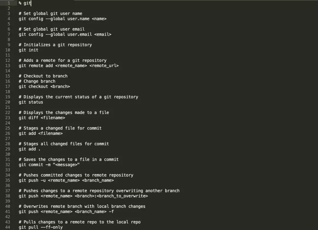 以「%」开头的行包含了特定的 Tag,也就是说上图「git」会作为标签加到该文件所有命令行最后;