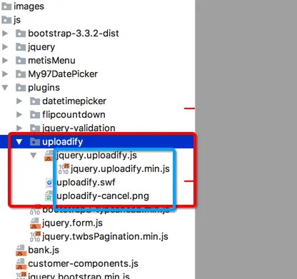 jquery.uploadify.js jquery.uploadify.min.js 是uploadify.swf提供我们操作uploadify.swf 的js对象 uploadify.swf 做上传的flash程序 uploadify-cancel.png 取消上传的图片