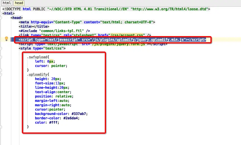 3.根据Demo我们在前台界面引入 jquery.uploadify.min.js