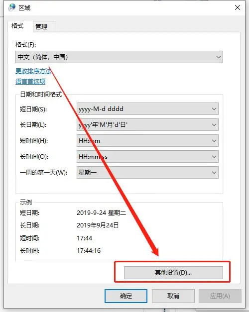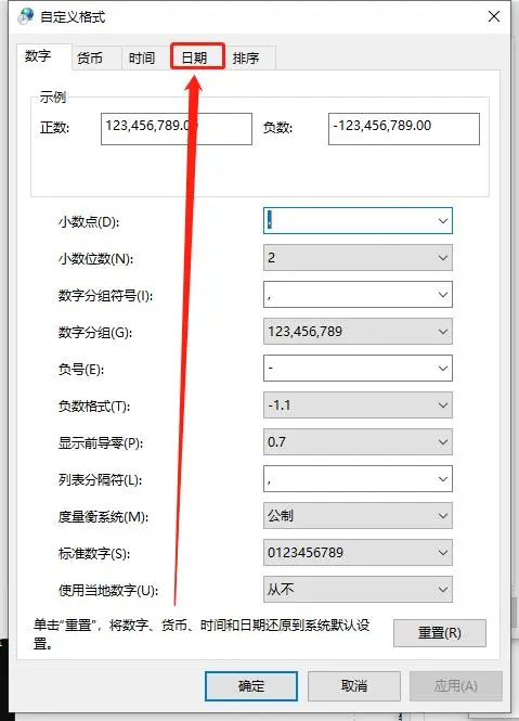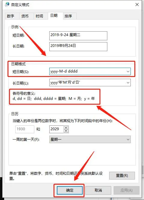 - 选择 日期 选项, 修改 日期格式 - 短日期 为你想要显示的格式. 下方有格式符说明.