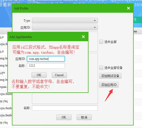 在申请ios描述文件之前先加个应用id(如果之前加过要用以前加过的应用id,可跳过此步)