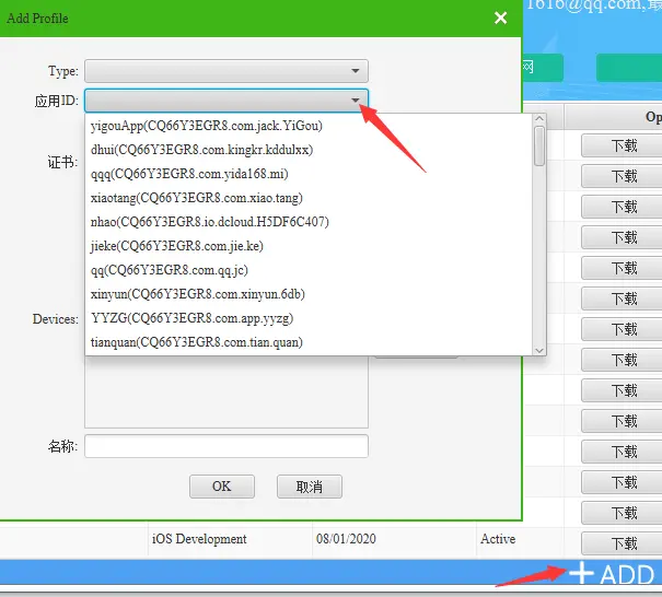 注意!注意!注意!要查看刚添加的应用id是否加成功,要先关掉窗口,重新点右下角+ADD进入下拉应用id可查看刚添加的应用id是否存在。