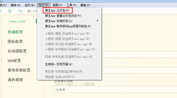 4.1、打开HBuilder工具,选择开发好的项目,点击发行,选择发行为原生安装包。