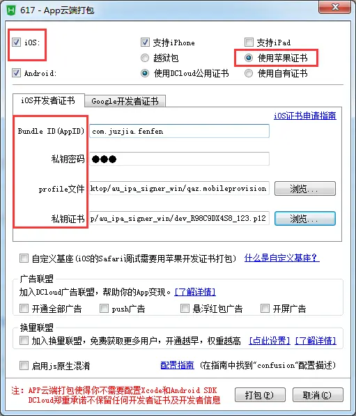 各开发者工具打包教程,根据自己使用的平台去打包,证书都是一样用。