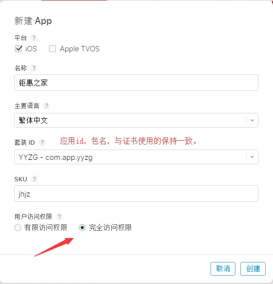 应用id:选择对应的应用id(又称套装id,appid,BundleID,包名)
