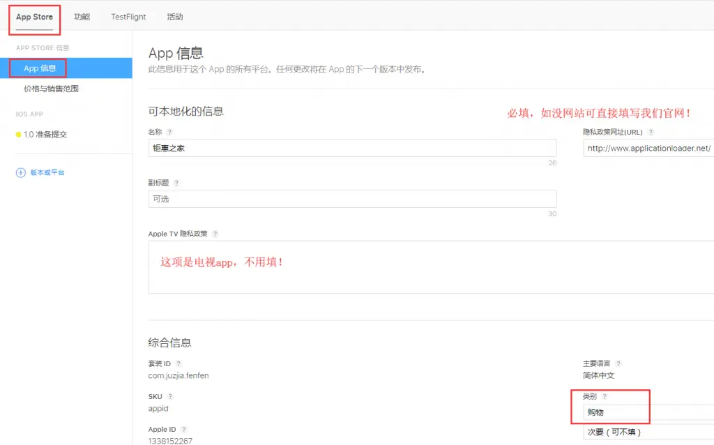 隐私政策网址:可直接填写我们官网http://www.applicationloader.net/或者自己的网站!