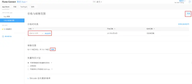 价格时间表:免费APP就设置为免费、收费的app就根据情况设置价格。