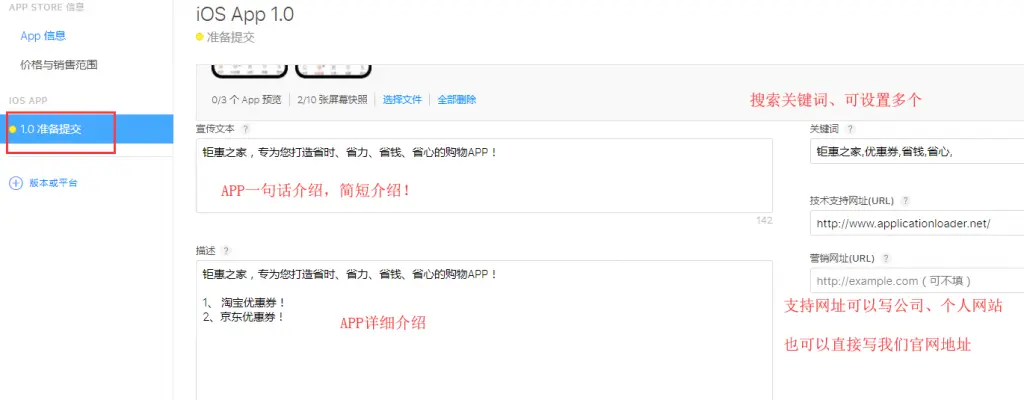 宣传文本:APP的一句话介绍(如不知道怎么写,到App Store搜索同行的app参考)