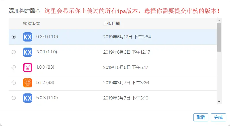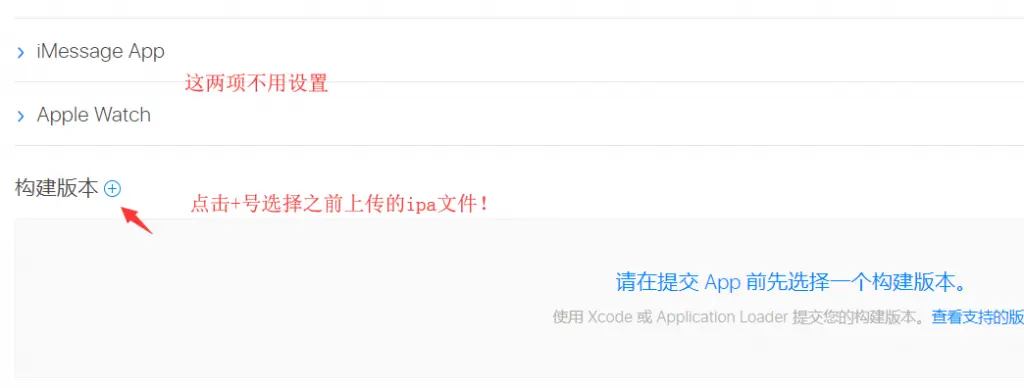 7.5、点击构建版本旁边+号选择之前上传的版本、(如果没有出现+号请看下面的教程查看问题)