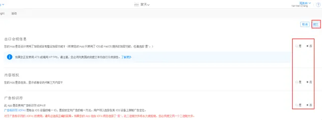 广告标识符:如果APP有投放广告的选是,没有选否