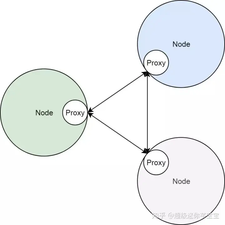 在 Kubernetes 集群中,服务的实现,实际上是为每一个集群节点上,部署了一个反向代理 Sidecar。而所有对集群服务的访问,都会被节点上的反向代理转换成对服务后端容器组的访问。基本上来说,节点和这些 Sidecar 的关系如下图所示。