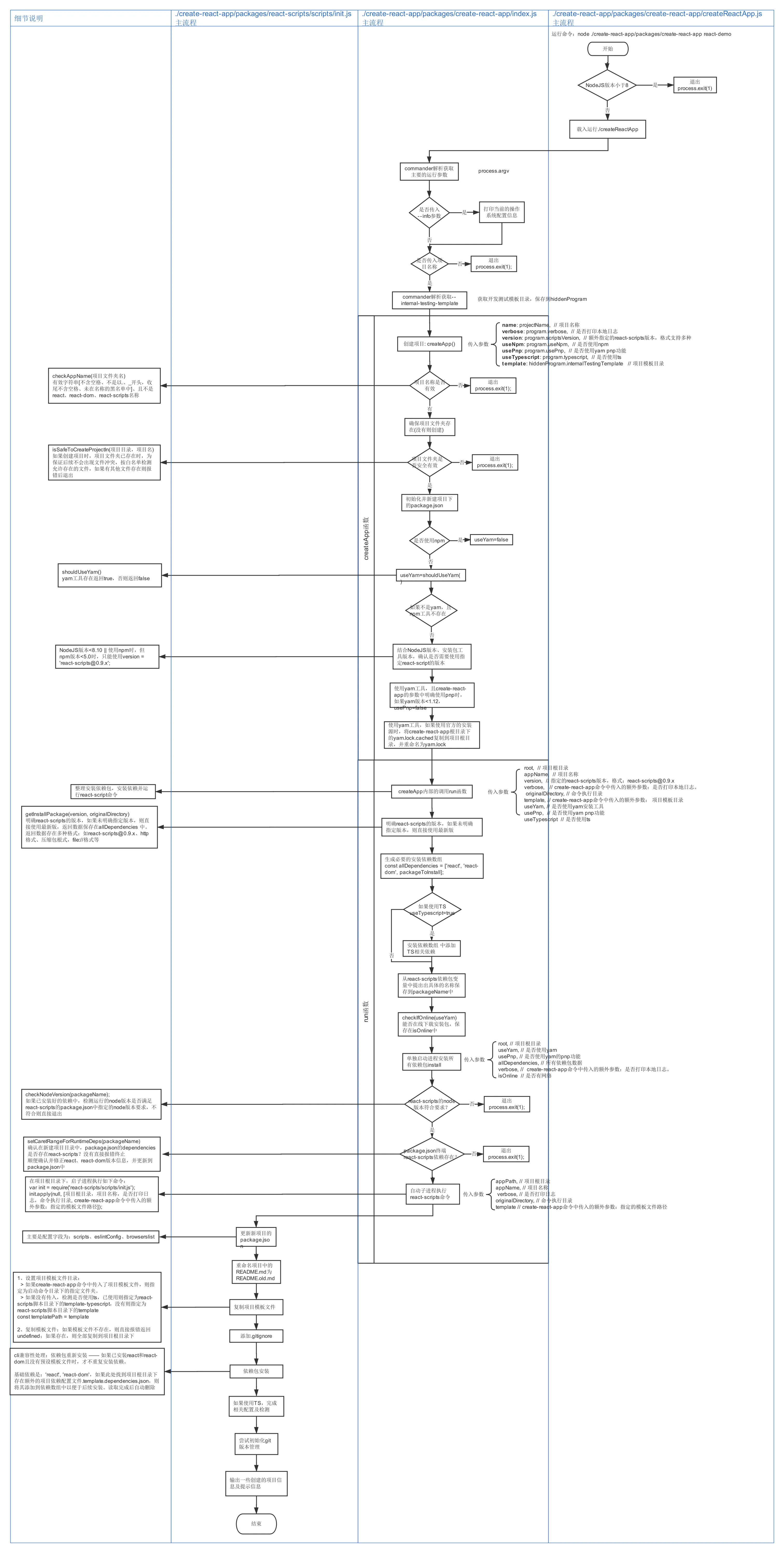 - 运行子进程执行react-scripts的初始化命令,命令详情如下: