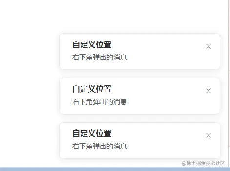 使用 ElementUI 时,当你在一次触发事件中,调用了两次或更多的 相同位置 的 $notify 时,这时候,弹出的通知框会重叠。