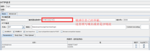 1.打开Jmeter--->添加线程组--->添加HTTP请求--->填入登录请求数据,如下所示: