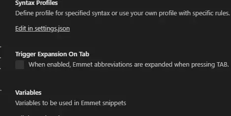 - 定位到Extensions -> Emmet -> Trigger Expansion on Tab -> 选中即可
