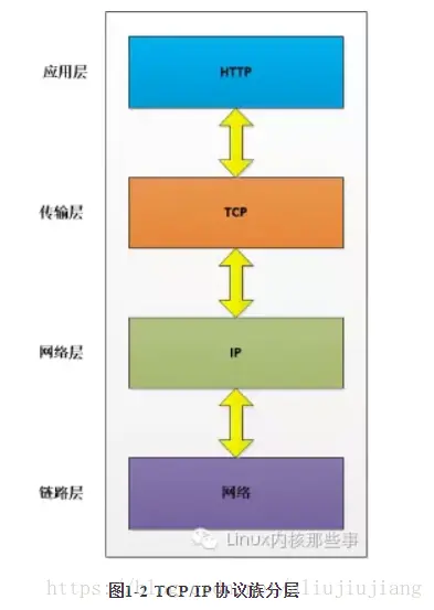 - TCP/IP协议族是由一个四层协议组成的系统,分别为:链路层 网络层 传输层 应用层