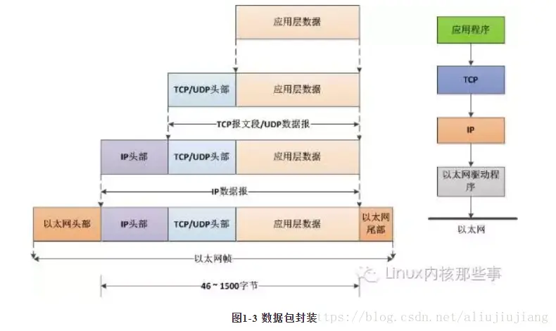 上层协议数据是如何转变为下层协议数据的呢?这是通过封装(encapsulate)来实现的。应用程序数据在发送到物理网络之前,会沿着协议栈从上往下传递。每层协议都将在上层协议数据的基础上加上自己的头部信息(链路层还会加上尾部信息),以为实现该层功能提供必要的信息。