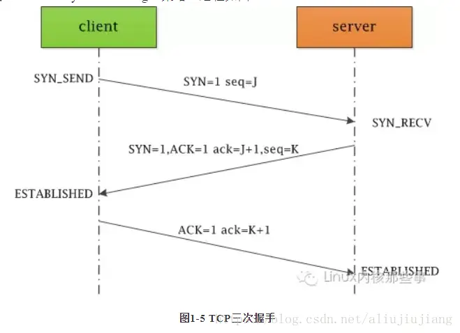 第三次握手:客户端接收到服务端的SYN+ACK报文段后,会想服务端发送ACK确认报文段,这个报文段发送完毕后,客户端和服务端都进入ESTABLISHED状态,完成TCP三次握手。