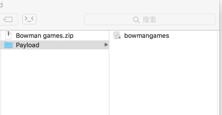 把Bowman games.ipa后缀改为zip,双击解压,得到Payload文件夹: