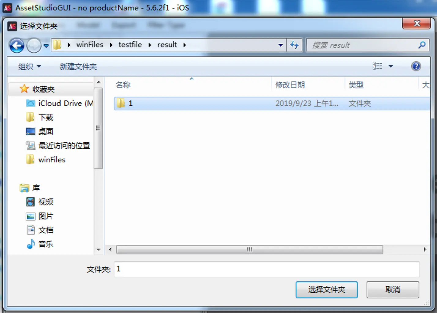 选择一个文件夹作为导出路径,这里选择的是"result/1":