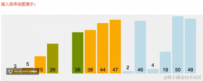 arr[j + 1] = arr[j]; //已排序的元素大于新元素,将该元素移到一下个位置