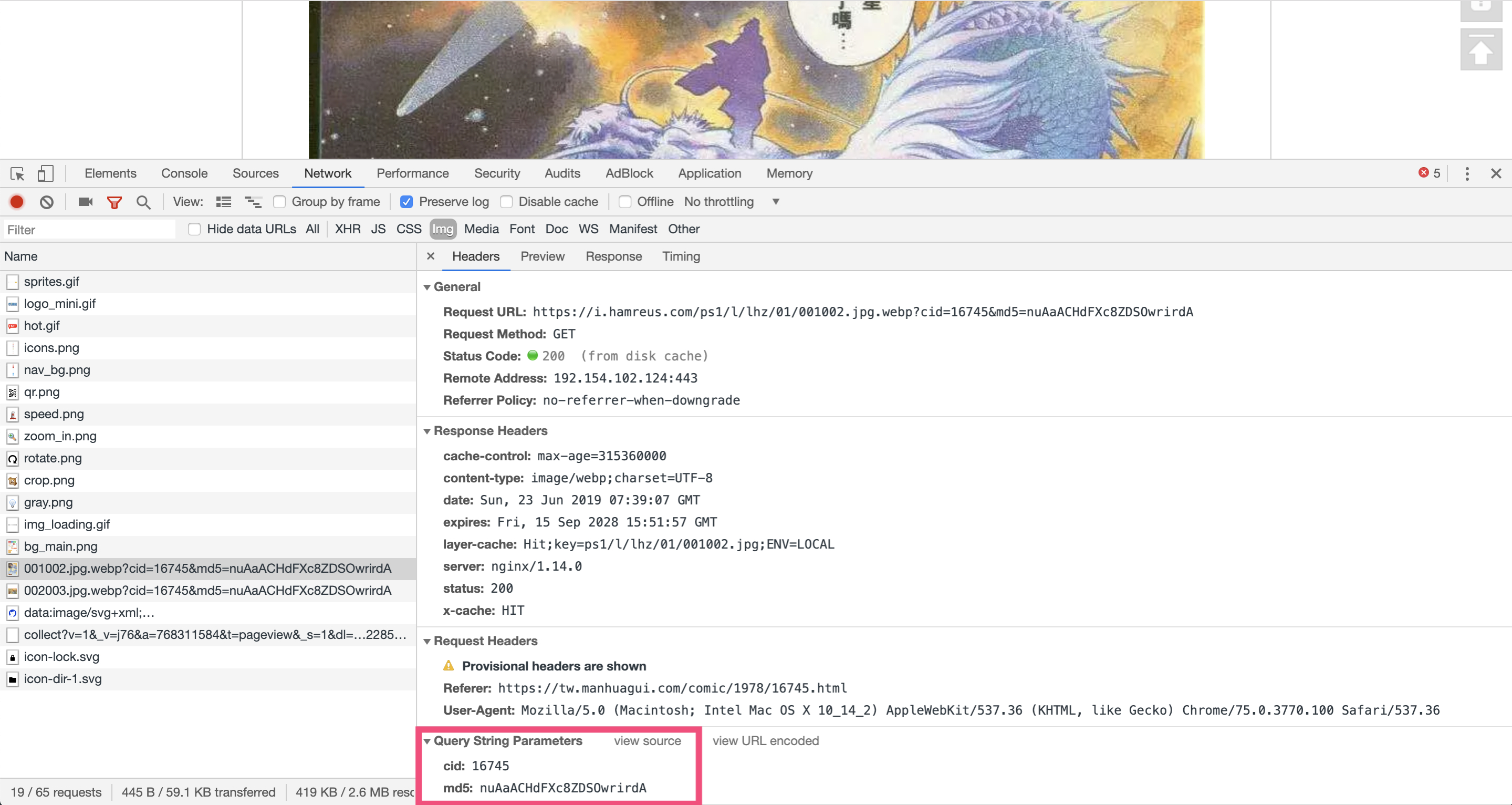 打开控制台,随意点击一本漫画,进入到正文页面,查看请求: