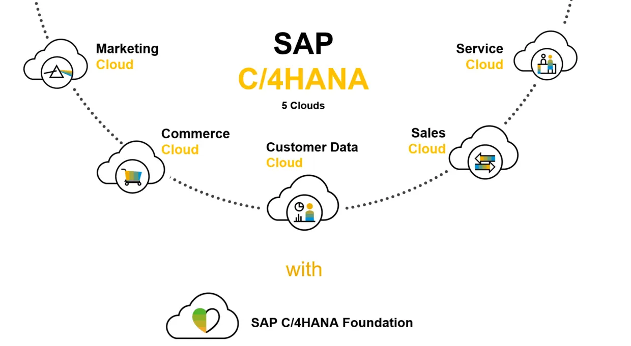 用这个例子来类比,去酒吧喝酒听歌的客人就是SAP C/4HANA的客户,酒吧音响播放的碟片就是C/4HANA五朵云,DJ就是C/4HANA Foundation,二者的职责都相同——把不同的碟片音乐(五朵云)进行编排(orchestration), 最后让客户以一种统一的方式去使用。
