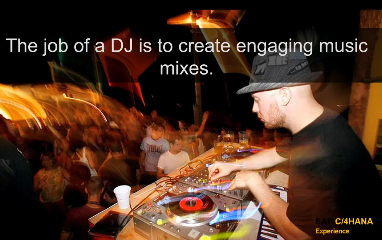 SAP社区上介绍C/4HANA Foundation的博客,使用了大家熟悉的酒吧里的一个场景。客人到酒吧喝酒,想听不同风格的音乐。酒吧DJ根据不同客户的需要去打碟(接歌混音等)。