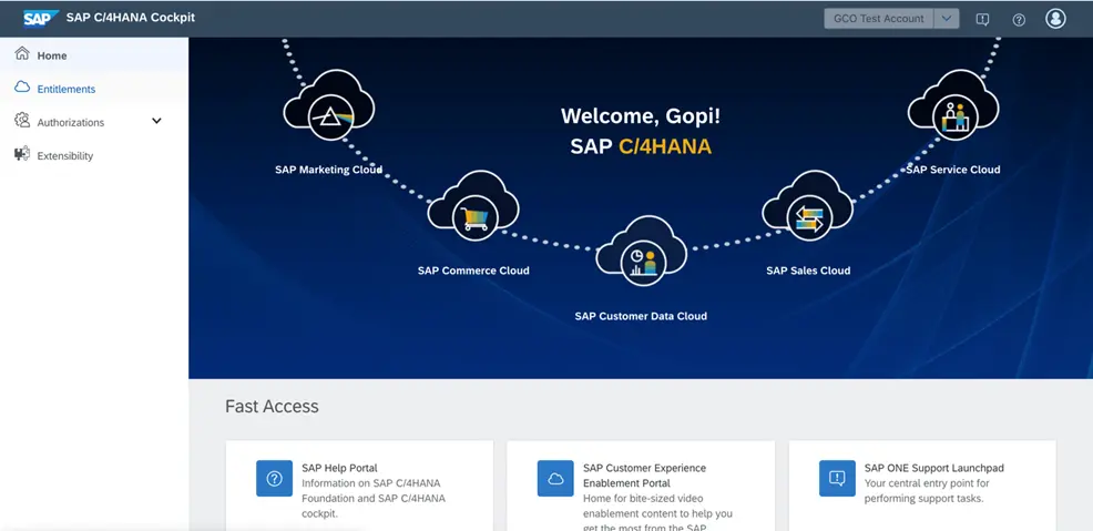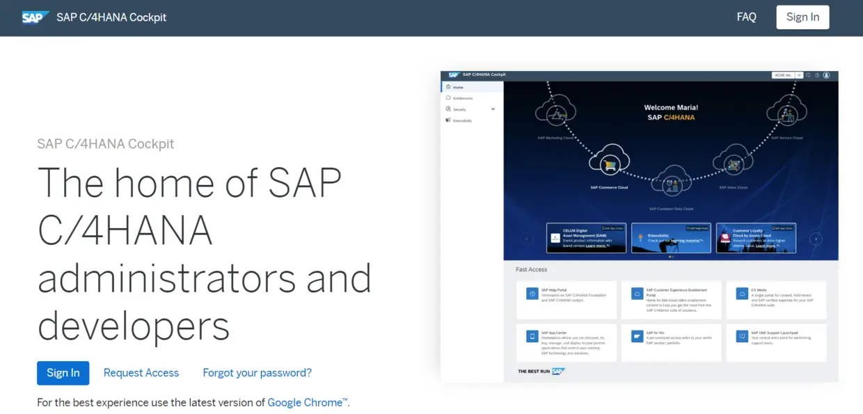 客户购买上述清单里包含的C/4HANA Suite产品后,会触发SAP对C/4HANA Foundation的配置流程。该流程结束后,购买合同中指定的用户邮箱会收到一封欢迎邮件,包含了C/4HANA cockpit的地址。
