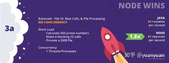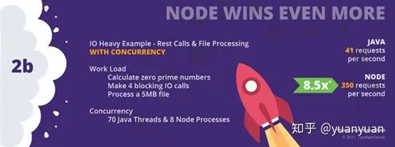对于Web应用程序而言,它为每个请求提供服务,需要执行大量的IO,对比之下,Node要比Java更加的适合。