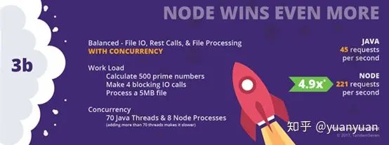 3b:有并发时,Node的速度增加到Java的4.9倍。