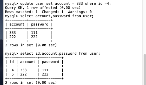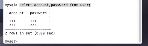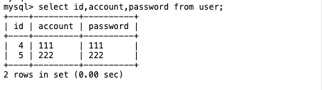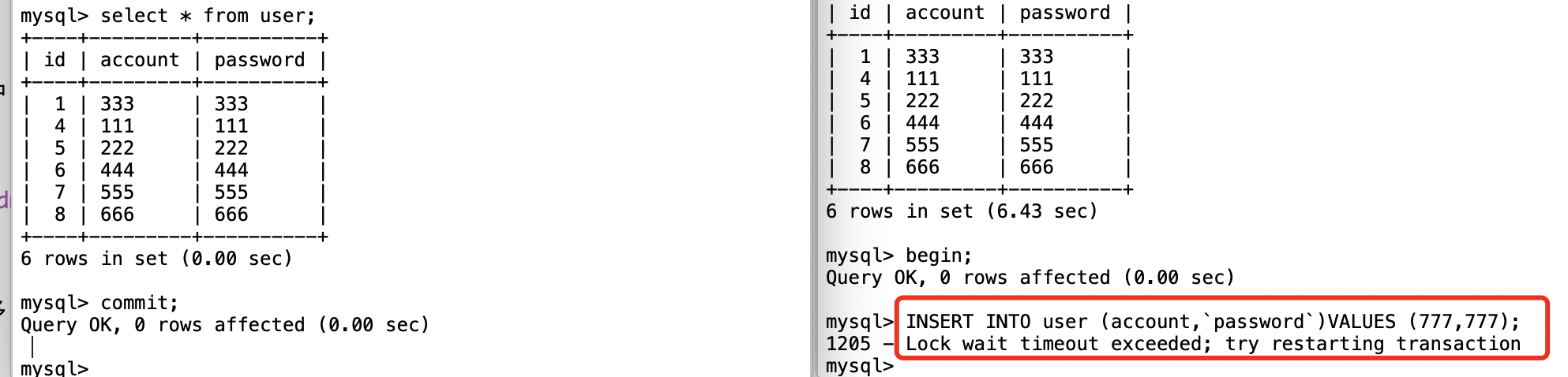 隔离级别:可重复读 下面我们用实战来演示一下 我们建一张user表,里面又account,password字段。