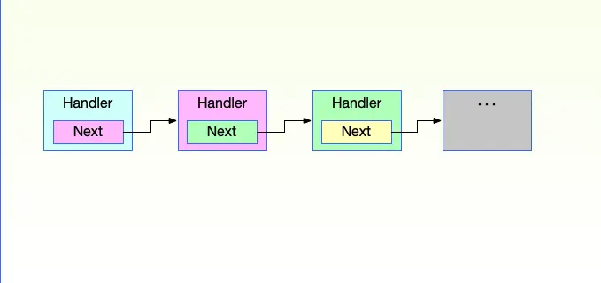 这里利用了链表的一部分特点,通过在当前的Handler指定下一个Handler来作为指针,相比较上面而言,Handler更自治,在节点的处理上更加灵活。