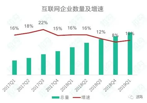 可以看到互联网企业的增速从 18 年明显下降,19年一季度同比之前年份增速是最低的。