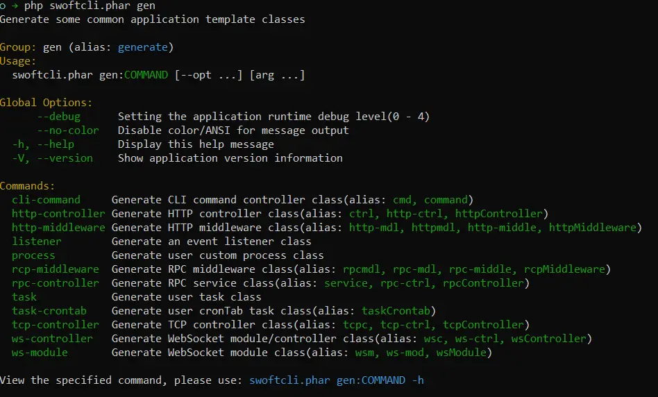 swoft-cli 新增场景功能类生成(控制器、中间件、任务等),创建项目骨架、组件初始化脚手架工具。