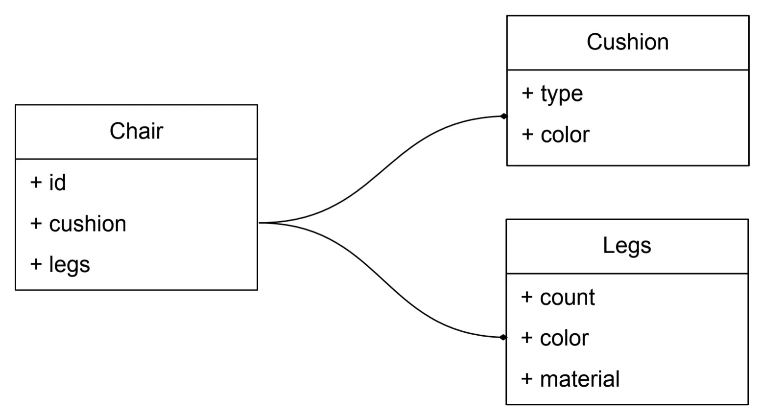 所有这些规则都适用于值对象,但它们还有另一个重要性:它们有助于减少实体的膨胀。通常,实体中有很多彼此不直接相关的属性,这可能表明我们可以提取其中一些属性给值对象。举例来说,假设我们有一个椅子实体,其属性有 id,cushionType,cushionColor,legsCount,legsColor 和 legsMaterial。注意到 cushionType 和 cushionColor 与 legsCount,legsColor 和 legsMaterial 不相关,因此在提取了一些值对象之后,我们的椅子将减少为三个属性:id,cushion 和 legs。现在,我们可以继续为 cushion 和 legs 添加属性,而不会使椅子变得更繁冗。