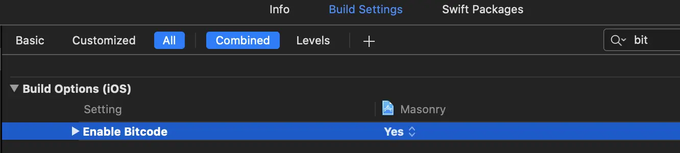 可以通过Build Settings下的选项进行设置,将bitcode设为YES来完成。