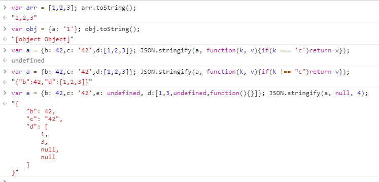 String() toString array,object,JSON.stringify(obj,[function][arr],space)内的不安全值有 undefined,function,symbol,在序列化对象时忽略相应属性,在数组序列化时返回null