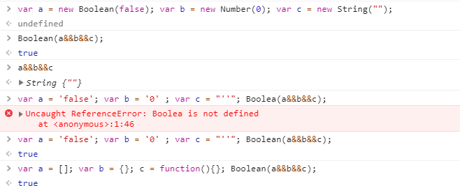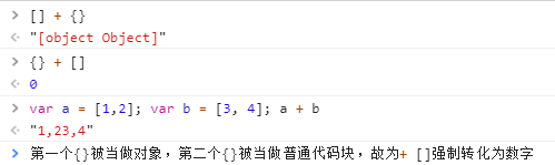 Boolean([]) = true 对Boolean类型的值进行+操作,操作数是什么就强制转化为什么类型 3 + true = 4; '3' + true = '3true'