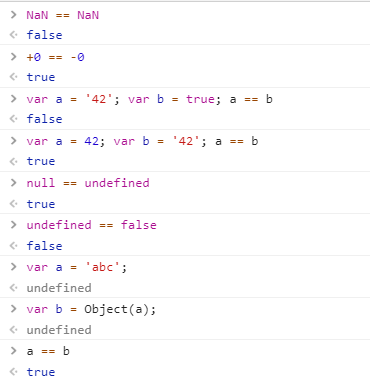 3. ==(宽松比较)和===(严格比较)