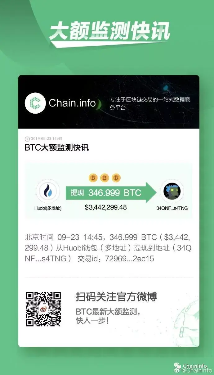 关于这笔交易,其实坊间有很多传闻,最大的传闻是美国合规比特币期货交易平台将在9月23日上线,目前为期货交易做一些现货的匹配。Chain.info后续也会密切关注,关注Chain.info官方微博就会给大家做及时的推送。
