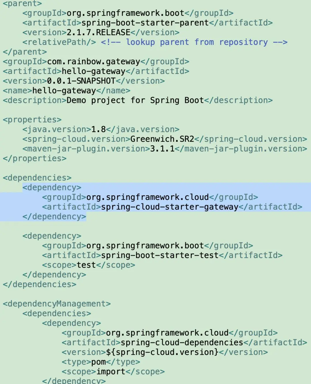 因为Gateway使用的是Netty + webflux,所以不需要引入web模块;只要引入spring-cloud-starter-gateway就行了,里面包含了spring-boot-starter-webflux 注:什么是webflux,老顾以后介绍