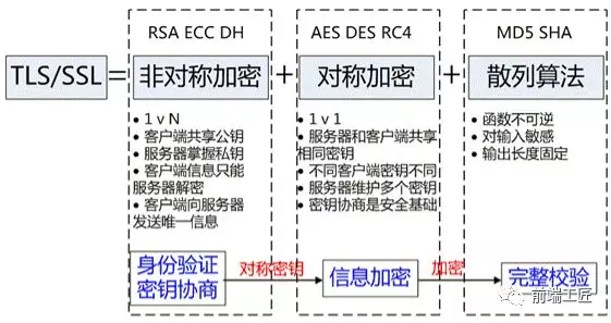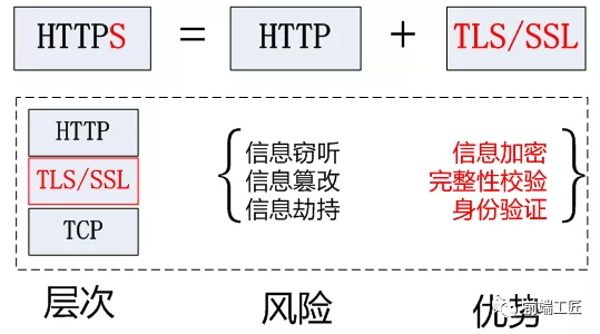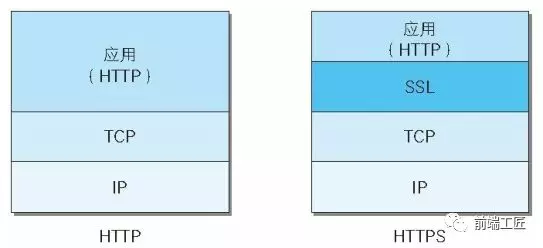 通常,HTTP直接和TCP通信。当使用SSL时,则演变成先和SSL通信,再由SSL和TCP通信了。简言之,所谓HTTPS,其实就是身披SSL协议这层外壳的HTTP。