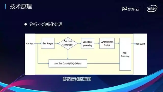 我们经常可以在体育赛事或者演唱会中遇到一种情况:多个不同环境下的场景频繁切换导致音量忽高忽低,对于用户的听觉体验造成极大影响。针对这种情况,单项增益和常规均衡化会导致原声失真、低音效果差和失去原本声音高低效果。京东云对于多场景切换的音频,首先会做音频的整体分析,并根据自定义的舒适区判断音频是否需要动态调整使其达到较好的收听体验。