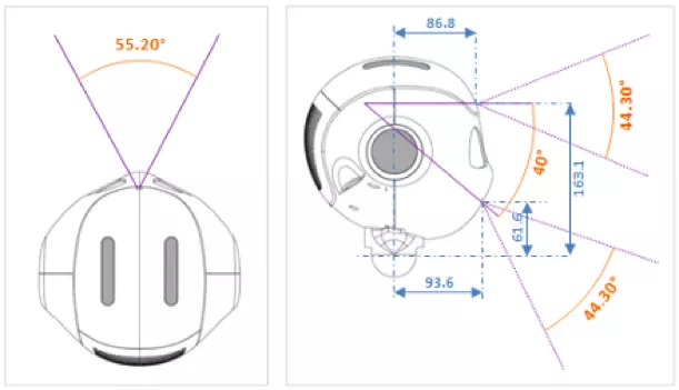 Pepper有两个内置相机。一个在他的平板电脑上,另一个在他的前额上。因为Pepper可以移动他的头部,所以更容易从前额相机捕捉人的脸部,如下图所示。