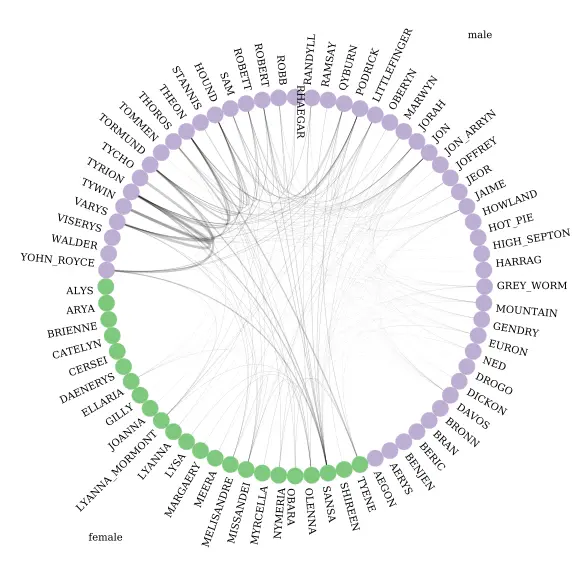 Analyzing Game of Thrones data to identify character importance, factions and gender interactions using Network Theory and Python.